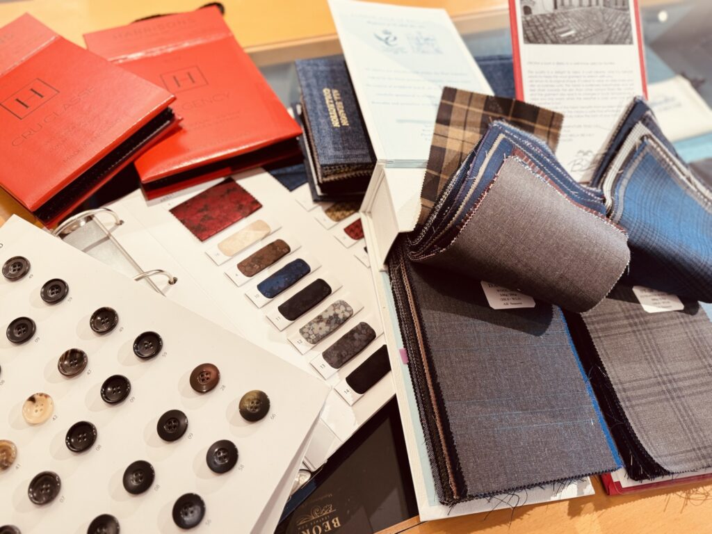 - 数百種類の生地サンプルから選びます。